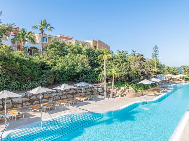 Ausstattung: 2016 zuletzt renoviert. Garten, 4 Pools, Kinderpool. Liegen, Schirme, Handtücher am Pool (geg. Geb.), Pool-/Snackbar, Sonnenterrasse. Empfangshalle, Rezeption, Lobby-Bar, Safe (geg. Geb.), TV-Lounge. 3 Restaurants (Buffet), 2 Bars, Shop, Friseur, Parkplatz (geg. Geb.). 274 Zimmer, 3 Etagen, 2 Lifte.