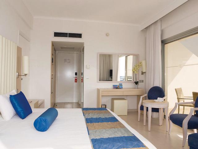 Mit Doppelbett oder Twinbett, 1 Extrabett (Etagenbett), Babybett (kostenlos), gefliestem Boden, Wasserkocher (kostenlos), Minibar (geg. Gebühr), Balkon oder Terrasse, Internet (geg. Gebühr), Safe (geg. Gebühr) und Sat-TV sowie zentral gesteuerter Klimaanlage (von Mai bis Oktober). Handtücher werden täglich gewechselt. Größe: 25 m².