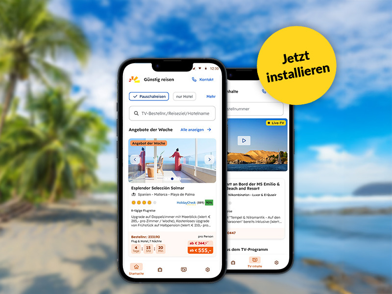Es muss nicht immer Luxus sein - die aktuellen sonnenklar.TV Reiseangebote bringen Sie supergünstig in den Urlaub. Dafür brauchen Sie lediglich eine neue Reisesuche in unserer übersichtlichen Buchungsstrecke zu starten. Wählen Sie Reiseangebote aus dem TV oder entscheiden Sie sich für Angebote anderer renommierter Veranstalter. Denn neben den sonnenklar.TV Reisen finden Sie so auch günstige Urlaubsangebote zahlreicher anderer billiger Anbieter. Vergleichen Sie die Preise und sichern Sie sich das Angebot, welches am besten zu Ihnen passt. Hier finden Sie außerdem die beliebtesten Hotels und die populärsten Reiseziele & Reisearten. Egal ob Kreuzfahrt oder Städtetrip, ob Pauschalreise in den Süden, Winterurlaub oder Nur-Hotel, in unserer Buchungsstrecke finden Sie genau das passende Angebot für Ihre Bedürfnisse. Buchen Sie jetzt Ihren Urlaub günstig bei sonnenklar.TV!