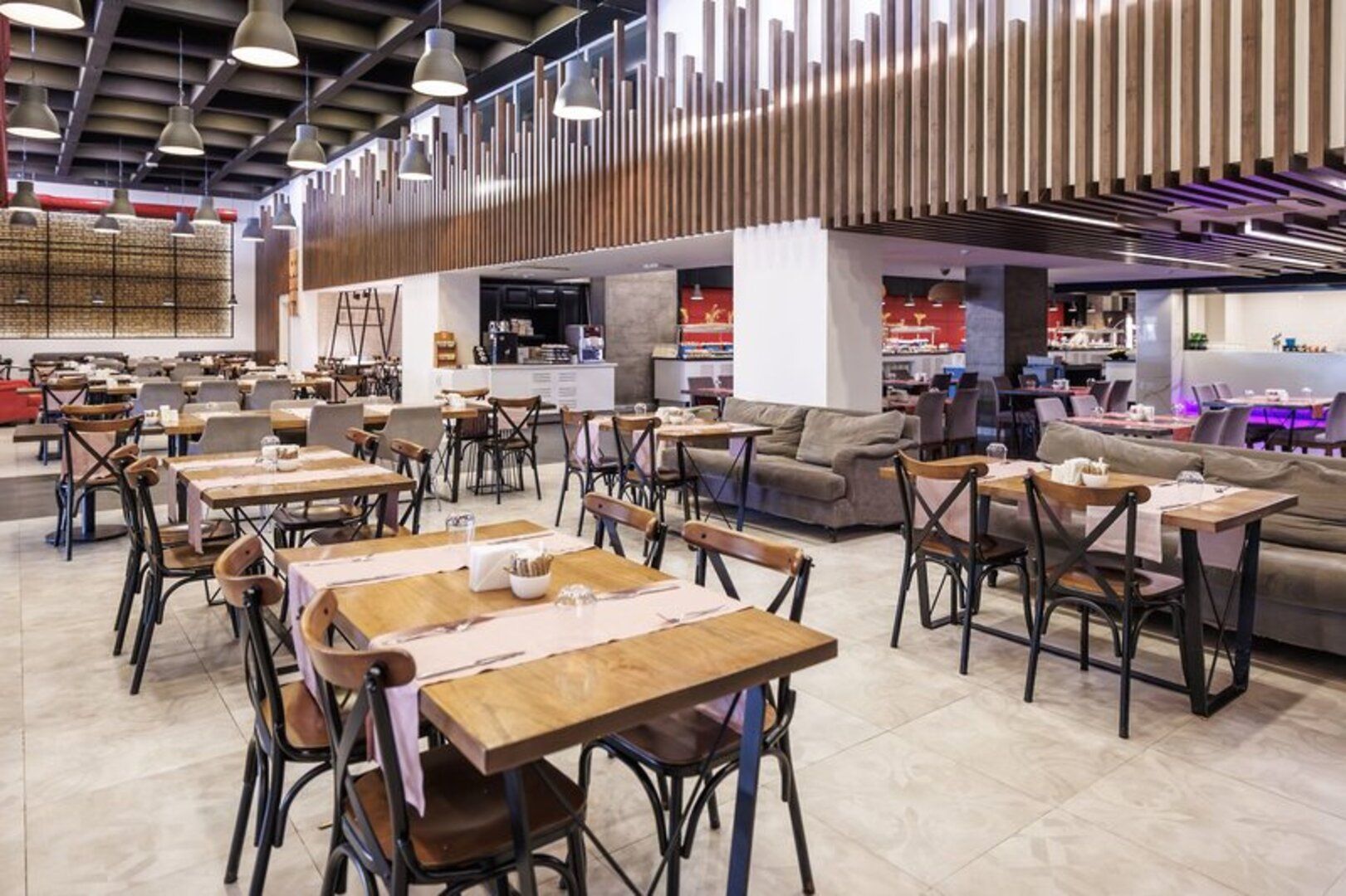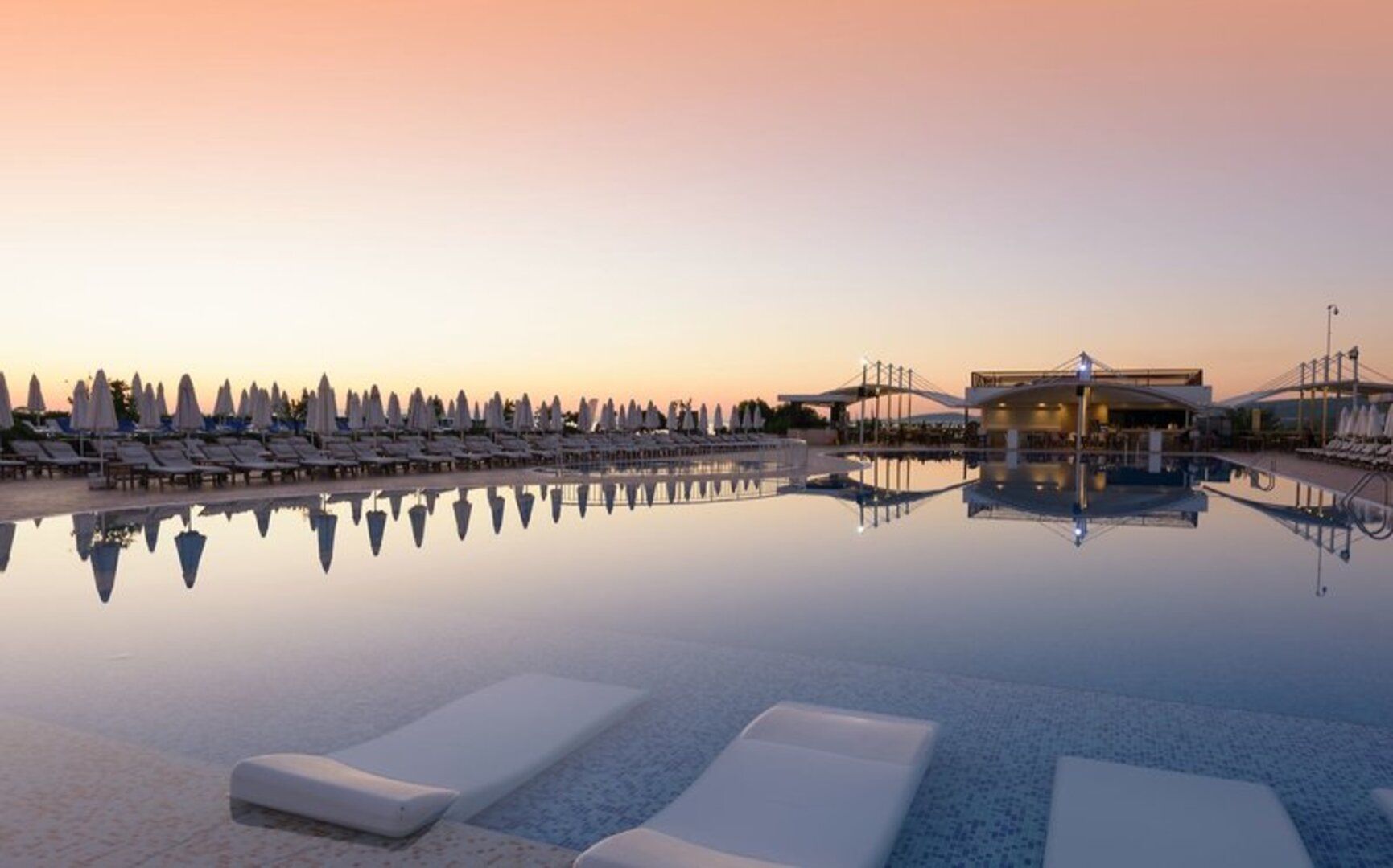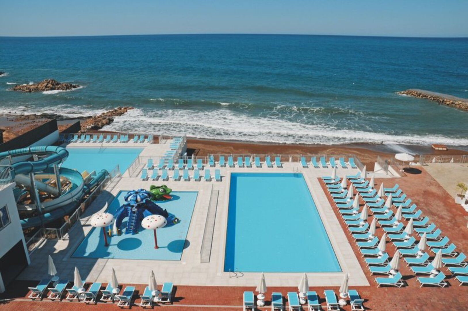 Die Anlage besteht aus einem Gebäude mit 222 Zimmern auf 6 Etagen bietet Lifte, Restaurant mit Terrasse, Bars sowie Außenanlage mit Ruhepool, Sonnenterrasse und Pool-/Snackbar sowie beheizbares Hallenbad. 2 Aquaparks mit jeweils drei und fünf Wasserrutschen. In der weitläufigen Außenanlage befinden sich ein Swimmingpool, Sonnenterrassen und eine Pool-/Snackbar. Am Pool und am Strand sind Sonnenschirme, Liegen mit Auflagen und Badetücher (gegen Kaution) inklusive.