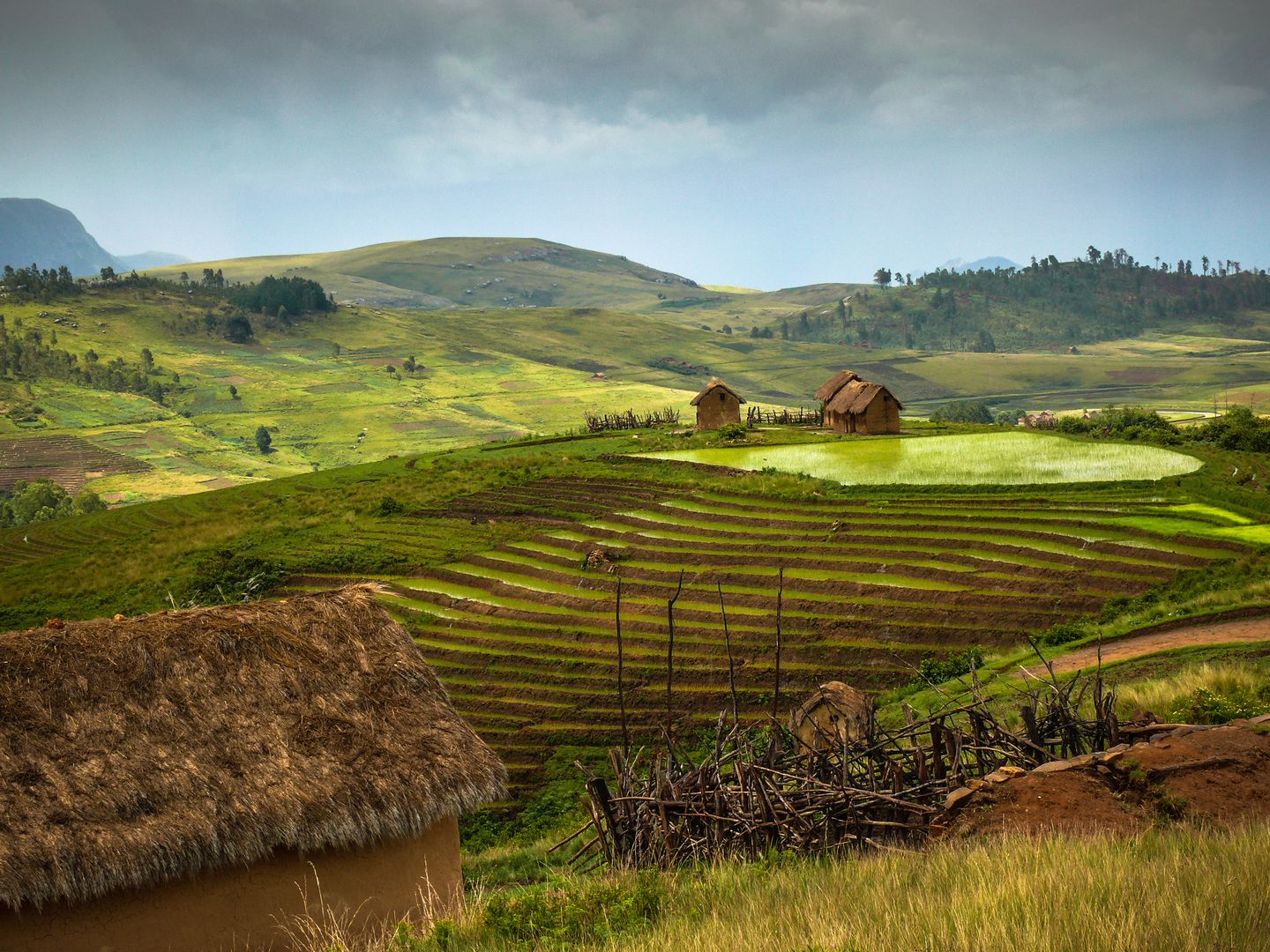 Rückfahrt nach Antananarivo durch die Hügellandschaft des Hochlands mit Reisfeldern, Dörfern und Lehmhäusern. Anschließend Heimreise.
