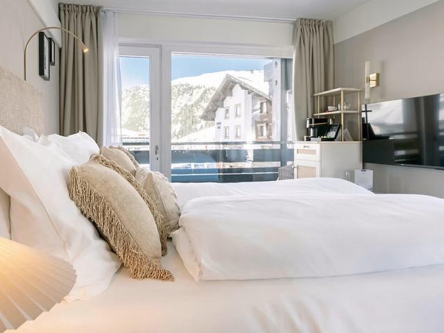 Die Zimmer: Ob im alpinen Chalet-Stil oder klassisch-elegant, jedes der insgesamt 41 Zimmer und Suiten bietet exklusiven Komfort und ein inspirierendes Ambiente. Antiquitäten und moderne Kunst erzeugen spannende Kontraste. Große Panoramafenster bieten in den meisten Zimmern einen fantastischen Ausblick auf die Zürser Bergwelt. Bad mit Badewanne/Dusche, Bademantel und Slipper, Föhn, Flat-TV, WLAN und Safe.