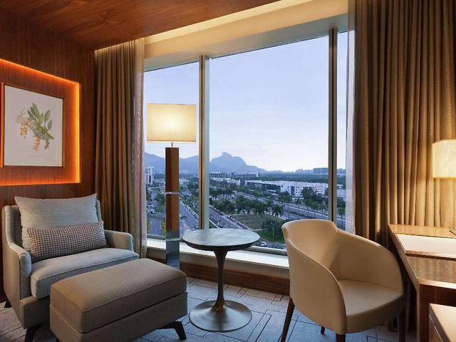 Das Hilton Barra Rio de Janeiro liegt ideal im dynamischen Geschäftsviertel von Barra da Tijuca und ist nur wenige Augenblicke vom Olympic Park entfernt. Dieses moderne Hotel in Rio de Janeiro bietet einfachen Zugang zu beliebten Restaurants, lebhaften Bars und Nachtclubs, Einkaufsmöglichkeiten und Freizeitaktivitäten. Besuche ein Konzert oder eine Sportveranstaltung in der Jeunesse Arena oder verbringe den Tag am Praia do Pepe, einem wunderschönen Strand, der bei Surfern und Kiteboardern beliebt ist. Die Gäste können auch die atemberaubende Aussicht von Pao de Acucar bewundern oder die berühmte Christusstatue besuchen. Das Hotel verfügt über fünf vielseitige Tagungsräume für geschäftliche Veranstaltungen, darunter zwei beeindruckende Ballsäle. Ein 24-Stunden-Businesscenter bietet Druck- und Faxdienste sowie modernste A/V-Technologie. Die engagierten Veranstaltungsmitarbeiter können dazu beitragen, den Erfolg jeder Konferenz, Schulung oder Hochzeitsfeier zu gewährleisten. Entspanne dich und bleibe produktiv in einem komfortablen und eleganten Zimmer oder einer Suite, die mit WLAN und einem HDTV ausgestattet ist. Genieße verlockende brasilianische Spezialitäten, die mit saisonalen Zutaten im hoteleigenen Restaurant zubereitet werden, und entspanne dich bei einem Cocktail in der einladenden Bar. Bitte beachte: Aufgrund notwendiger Renovierungsarbeiten sind das Penthouse und die dazugehörigen Einrichtungen (einschließlich des Pools und des Fitnessraums auf dem Dach) vom 27. April 2024 bis zum 30. Juni 2024 geschlossen. Die Arbeiten werden auf das oberste Stockwerk beschränkt sein, aber es kann zu Beeinträchtigungen in anderen öffentlichen Bereichen kommen.