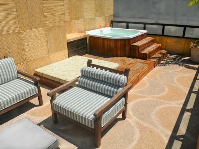 Sport & Fitness: Belebende Erfrischung garantiert die Außenpoolanlage. Erfrischende Getränke an der Poolbar und wohlige Entspannung im Whirlpool bringen alle Wasserratten in die beste Stimmung. Bequeme Liegestühle stehen auf der Terrasse bereit. Die Gäste haben verschiedene Freizeitmöglichkeiten zur Auswahl, darunter ein Spa, eine Sauna, Hydrotherapie-Anwendungen und ein Solarium.
