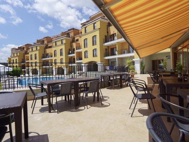 Essen & Trinken: Es stehen verschiedene gastronomische Einrichtungen zur Auswahl, wie ein Café und eine Bar. Den Gästen stehen 2 Restaurants mit Klimaanlagen, Kinderhochstühlen und Bereichen für Nichtraucher und Raucher zur Verfügung. Die Unterbringung bietet als buchbare Verpflegungsleistungen Übernachtung inkl. Frühstück und All-Inclusive. Zum Frühstück bedienen sich die Gäste am reichhaltigen Buffet. Verschiedene Gerichte à la carte können zum Mittagessen und Abendessen gewählt werden. Diätgerichte, vegetarische Gerichte und Kindermenüs werden auf Wunsch zubereitet. Zusätzlich sind spezielle Verpflegungsangebote und Snacks erhältlich. Das Apartmenthotel führt ein Sortiment alkoholischer und alkoholfreier Getränke.
