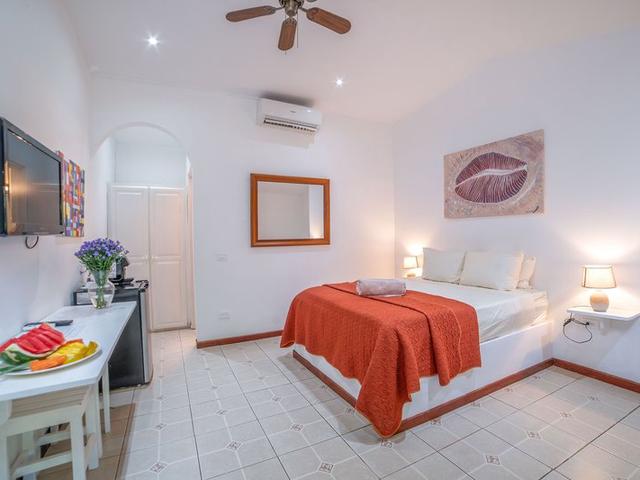 Mitten in Tamarindo wohnen Sie im Hotel Pasatiempo in unmittelbarer Nähe zum Einkaufszentrum und erreichen Parque Nacional Marino Las Baulas de Guanacaste und Tamarindo Church ganz einfach. Dieses Hotel befindet sich in der Nähe von: Las Baulas National Marine Park sowie Grande Strand.Zimmer Fühlen Sie sich in einem der 22 klimatisierten Zimmer mit Flachbildfernseher wie zu Hause. In Ihrem Zimmer finden Sie ein Memory-Foam-Bett mit Daunenbettdecken vor. Die Zimmer haben eigene Patios. Fernseher mit Kabelempfang lassen keine Langeweile aufkommen. Die Badezimmer bieten Duschen und Haartrockner.Ausstattung Nutzen Sie folgende Freizeiteinrichtung: Außenpool. Sie können aber auch den schönen Ausblick von folgenden Punkten genießen: Terrasse und Garten. Auch WLAN-Internetzugang (kostenlos) und Concierge-Service bietet dieses Hotel.Speisen Freuen Sie sich auf schmackhafte Mahlzeiten im Hotel Pasatiempo, denn das Haus besitzt ein Restaurant. Entspannen Sie sich mit einem erfrischenden Getränk der Bar/Lounge oder der Poolbar.Business, weitere Annehmlichkeiten Geschäftsreisenden stehen Gepäckaufbewahrung und Wäscherei zur Verfügung. Der Flughafentransfer (rund um die Uhr) ist kostenpflichtig; außerdem gibt es vor Ort Folgendes: Parken ohne Service (kostenlos).
