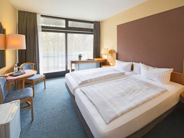 Wohnen: Doppelzimmer (DB2, DB4, DB6, ca. 22 qm), TV, WLAN (inklusive), Safe, Minikühlschrank. Dusche, WC, Föhn. Balkon. Parkblick