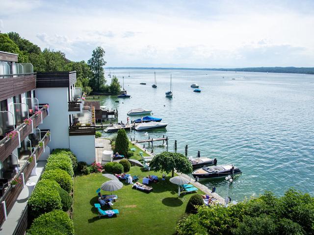 Das erwartet Sie: Am Ostufer des Starnberger Sees liegt das moderne Haus und verfügt über einen hoteleigenen Seezugang, eine Schiffsanlegestelle sowie den Wellnessbereich „Leoni Spa“.
