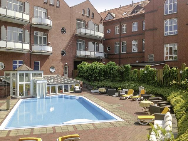 Das Hotel liegt im Ortszentrum von Borkum, der Strand ist 300 Meter entfernt. Das Hotel punktet außerdem mit seiner gemütlichen Bar "Seewiefke" sowie mit seinem beheizbaren Pool.