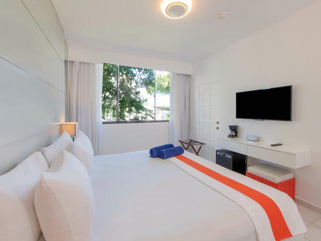 Ausstattung: Moderne, im karibischen Stil erbaute Hotelanlage mit Poollandschaft, Sonnenterrasse, Liegen, Schirmen und Badetüchern. Moderner Empfangsbereich mit Rezeption, Snackbar, Buffetrestaurant, 4 À-la-carte-Restaurants (u. a. italienische, mexikanische, Fusionküche). Landeskategorie: 5 Sterne, 190 Zimmer.
