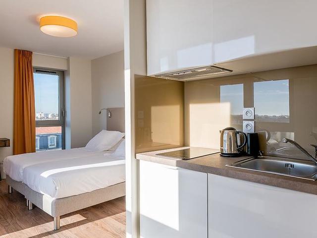 Eine strategische Lage im Herzen von Bordeaux: Dein Aparthotel befindet sich im intimen Viertel Sainte-Croix. Seine ideale Lage ist mit allen öffentlichen Verkehrsmitteln (Straßenbahn C und B, Bus, Vcub) für deinen Urlaub oder deine Geschäftsreise leicht erreichbar. Verbringe deinen Aufenthalt im Zentrum von Bordeaux und entdecke diese UNESCO-Weltkulturerbestadt, die Cité du Vin, die Place de la Bourse oder ihre zahlreichen Geschäfte und Freizeitaktivitäten entlang der umgebauten, renovierten Docks an der Garonne. Deine Residenz liegt in der Nähe des Marché des Capucins und seiner gemütlichen Restaurants, eines der wichtigsten kulinarischen Erlebnisse deines Aufenthalts und eine Gelegenheit, den Lebensstil von Bordeaux aufzusaugen. In nur 30 Minuten mit dem Regionalzug kannst du einen Tapetenwechsel genießen und einen Tag in der Bucht von Arcachon verbringen. Designer-Suiten und praktische Annehmlichkeiten: Unsere Suiten sind komplett möbliert und ausgestattet (hochwertige Betten, Schreibtisch, Küchenzeile usw. ), um Ruhe, Entspannung oder sogar Arbeiten mit völliger Unabhängigkeit während deines Aufenthalts zu fördern. Um deinen Alltag ohne Einschränkungen zu gestalten, hast du Zugang zu einer kostenlosen, unbegrenzten WLAN-Verbindung (Glasfaser), einem Wellnessbereich (Fitnessraum und Sauna), Wäschemöglichkeiten sowie einem Frühstücks- und Snackservice in Buffetform oder zum Mitnehmen. Die Unterkunft ist rund um die Uhr geöffnet. Es handelt sich um eine Nichtraucherunterkunft.