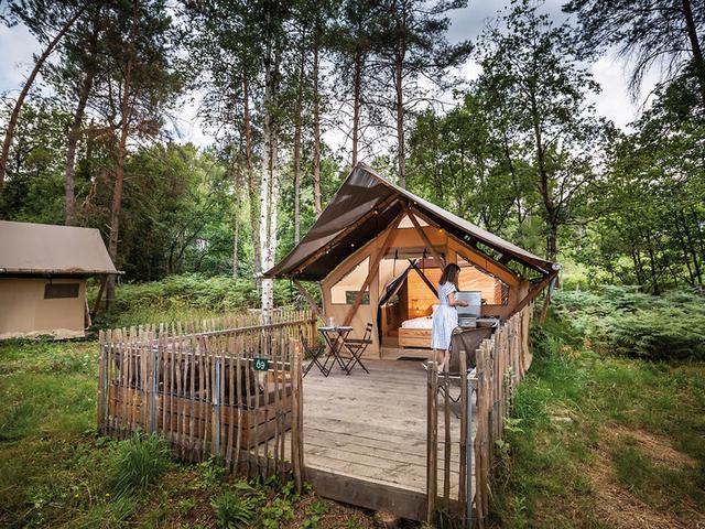 Autofrei, fußgängerfreundlich und mitten in der Natur: So idyllisch präsentiert sich das Campingdorf am Lac de Rillé. Ein überdachtes Schwimmbad und das Wald-Spa mit Seeblick sind nur zwei der Highlights.