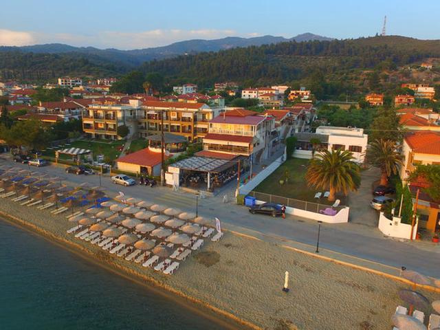Allgemeine Beschreibung:Das Hotel Meliton Inn Hotel and Suites befindet sich direkt am Sandstrand. Am Strand sind Sonnenschirme und Sonnenliegen kostenlos verfügbar. Zum touristischen Zentrum sind es ca. 700 m. Die Stadt Neos Marmaras ist ca. 500 m entfernt (Nikiti ca. 21 km, Sarti ca. 58 km). Ein Supermarkt ist nach ca. 300 m zu erreichen. Zu den nächsten Bars und Restaurants gelangt man nach rund 50 m. Folgende Sehenswürdigkeiten sind vom Hotel aus erreichbar: Old Parthenon Village (ca. 7 km). Für Mobilität im Urlaub sorgen ein Taxistand (ca. 700 m) und eine Bushaltestelle (ca. 300 m entfernt). Zur ärztlichen Versorgung im Notfall befindet sich ein Krankenhaus in etwa 50 km Entfernung. Der Flughafen (SKG) ist ca. 95 km entfernt. Ausstattung:Das eingeschossige Hotel verfügt über 27 Zimmer, die sich auf ein Hauptgebäude und 3 Nebengebäude verteilen. Es ist ausgestattet mit einer Rezeption (Check In ab 15:00 Uhr, Check out bis 11:00 Uhr) sowie einer Lobby. Für das leibliche Wohl sorgt eine Snackbar. Erfrischende Getränke in geselliger Runde gibt es an der Hotelbar. WLAN steht den Hotelgästen kostenlos zur Verfügung. Für Gäste mit körperlichen Einschränkungen bietet die Unterkunft teilweise rollstuhlgerechte Badezimmer. Die Zimmerreinigung ist kostenlos. Zimmer-Service ist gegen Gebühr. Verpflegung:Frühstück (von 08:00 - 10:30 Uhr) vom Buffet. Sport/Freizeit:Ein Golfplatz liegt 5 km vom Hotel entfernt. Für die Unterhaltung der kleinen Gäste sorgt ein Spielplatz. Zusätzliche Informationen:Für bestimmte Einrichtungen oder Aktivitäten können zusätzliche Gebühren anfallen. Einige Dienstleistungen hängen von der Jahreszeit und den lokalen klimatischen Bedingungen ab. Servicesprachen: englisch und deutsch. Kreditkarten: Visa und Euro/MasterCard. 2 Schlafzimmer Deluxe Apartment (Meerblick):Mit Babybett (kostenlos), Heizung (individuell regulierbar) und Balkon oder Terrasse individuell regulierbarer Klimaanlage. Größe: 50 m². Standard Familienzimmer (Balkon oder Terrasse):Mit Doppelbett, Twinbett oder Einzelbett, Extrabett (Zustellbett), Babybett (kostenlos), Heizung (individuell regulierbar), Balkon oder Terrasse, Internet (kostenlos), Safe (kostenlos) und Flatscreen-Sat-TV sowie individuell regulierbarer Klimaanlage. Größe: 20 m². Standard JuniorSuite (Meerblick):Mit Babybett (kostenlos), Heizung (individuell regulierbar) und Balkon oder Terrasse individuell regulierbarer Klimaanlage. Größe: 45 m². Doppel Standard Zimmer (Balkon oder Terrasse):Mit Doppelbett, Twinbett oder Einzelbett, Babybett (kostenlos), Heizung (individuell regulierbar), Balkon oder Terrasse, Internet (kostenlos), Safe (kostenlos) und Flatscreen-Sat-TV sowie individuell regulierbarer Klimaanlage. Größe: 20 m². Executive Suite (Meerblick):Mit Babybett (kostenlos), Heizung (individuell regulierbar) und Balkon oder Terrasse individuell regulierbarer Klimaanlage. Größe: 55 m².