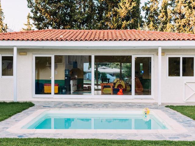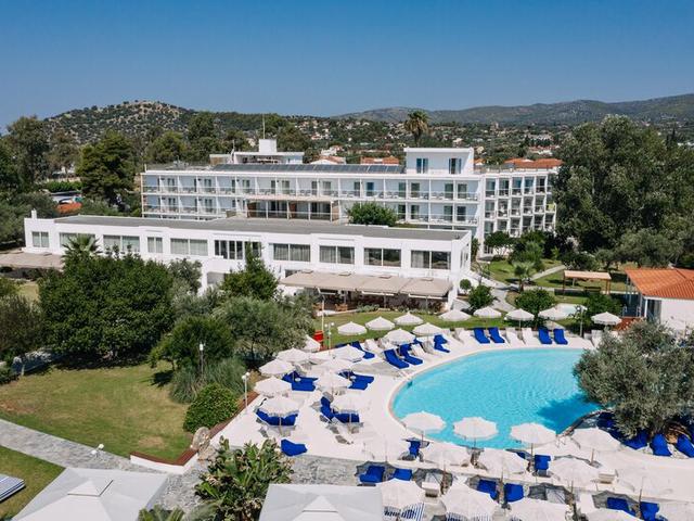 Lage: Direkt am Sand-/Kiesstrand mit Taverne und Strandbar. Bis zum Stadtzentrum und dem Hafen von Eretria ca. 2 km. Zum Internationalen Flughafen Athen ca. 113 km.