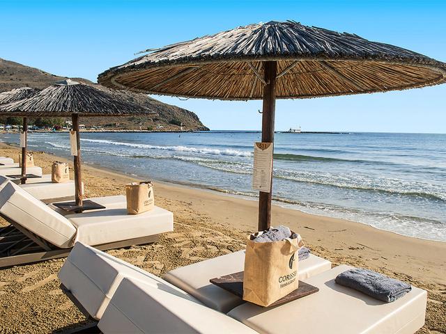 Ausstattung: Das besonders bei seinen Stammgästen sehr beliebte Hotel im neuen Design! Modernes und frisch renoviertes Adults-Only-Hotel mit Hauptgebäude und mehreren Wohngebäuden. 2 Swimmingpools, Sonnenterrassen mit Liegen und Schirmen am Pool. Empfangsbereich mit Rezeption, Gepäckraum, WLAN (im gesamten Hotel), Á-la-carte-Restaurants "Ophelia" und "Autograph". Die Bar auf der Dachterrasse des Schwesternhotels Corissia Princess kann mitgenutzt werden. Zusätzlich finden Sie am Strand den Corissia Park (eine gepflegte Parkanlage am Hotel Corissia Beach, ca. 50 m entfernt) mit Süßwasser-Swimmingpool, Cocktail- und Weinbar, Buffet-Restaurant, À-la-carte Restaurant "Armonia", Liegewiese, Liegen, Schirme und Badetücher am Pool und am Strand. Landeskategorie: 5 Sterne, 6 Gebäude, 144 Zimmer.