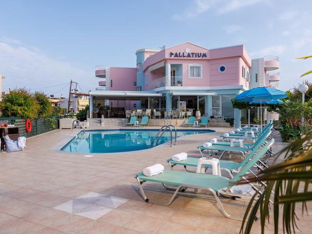 Zu den Einrichtungen und Dienstleistungen gehören WLAN-Zugang, Parkplatz, Restaurant, Bar und Schwimmbad. Die Zimmer verfügen über Klimaanlage (gegen Gebühr), WLAN-Zugang, Safe im Zimmer (gegen Gebühr), Kochnische, Kühlschrank und Balkon/Terrasse. **Klimaanlage funktioniert von Juni bis September gegen Aufpreis)** **Unterkunft für zusätzliche Personen auf Schlafsofa im Wohnzimmer** ** Öffnungszeiten der Rezeption von 8:00 bis 00:30 Uhr.** Adresse: 70014 Gouves, Kreta, Griechenland.