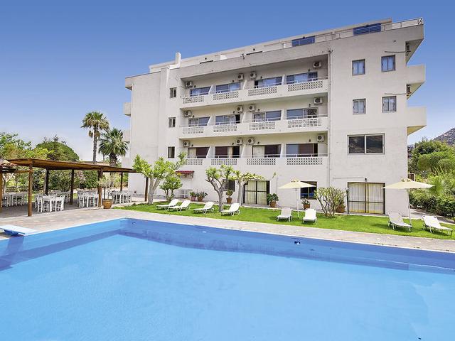 Ausstattung: Kleines Ferienhotel. Garten, Swimmingpool, Sonnenterrasse, Liegewiese, Spielplatz, Liegen, Schirme (am Pool), Pool-/Snackbar. Haupthaus mit Wohngebäude, Rezeption, Aufenthaltsraum, WLAN (inklusive), Bar, Frühstücksraum. Landeskat.: 3 Sterne, 80 Zimmer, 4 Etagen.