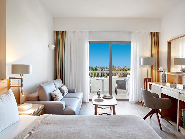 In den Zimmern gibt es eine Klimaanlage und eine individuell steuerbare Heizung. In den meisten Unterkünften genießen die Gäste von Balkon oder Terrasse einen Ausblick auf das Meer. Die Zimmer verfügen über ein Queensizebett und ein Sofabett. Auch Baby- und Zustellbetten können zur Verfügung gestellt werden. Außerdem sind ein Safe und eine Minibar verfügbar. Auch ein Minikühlschrank und eine Tee-/Kaffeemaschine sind vorhanden. Eine Hosenpresse ist für den zusätzlichen Komfort der Gäste verfügbar. Darüber hinaus sind ein Telefon mit Direktwahl, ein TV-Gerät mit Satelliten-/Kabelempfang und WiFi (ohne Gebühr) vorhanden. Zu den Vorzügen der Zimmer gehören Hausschuhe. Im Badezimmer, mit einer Dusche und einer Badewanne ausgestattet, stehen für die Gäste ein Haartrockner und Bademäntel bereit. Außerdem sind rollstuhlgerechte Zimmer mit barrierefreiem Badezimmer buchbar. Das Hotel bietet Familien- und Nichtraucherzimmer.