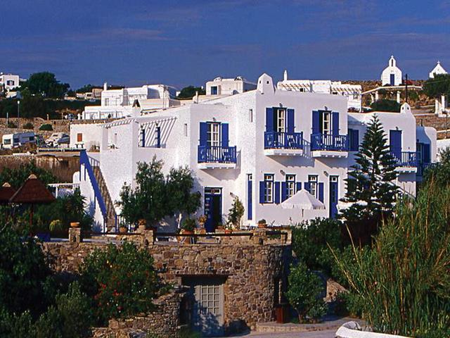 Lage: Das Hotel befindet sich im Ort Vryssi, auf dem Weg nach Plati Ghialos, ca. 600 m vom Stadtzentrum von Mykonos-Stadt entfernt. In etwa 700 m Entfernung liegt der großartige Strand von Megali Ammos. Von der Busstation besteht ein hervorragender Anschluss an die verschiedenen Strände der Insel.