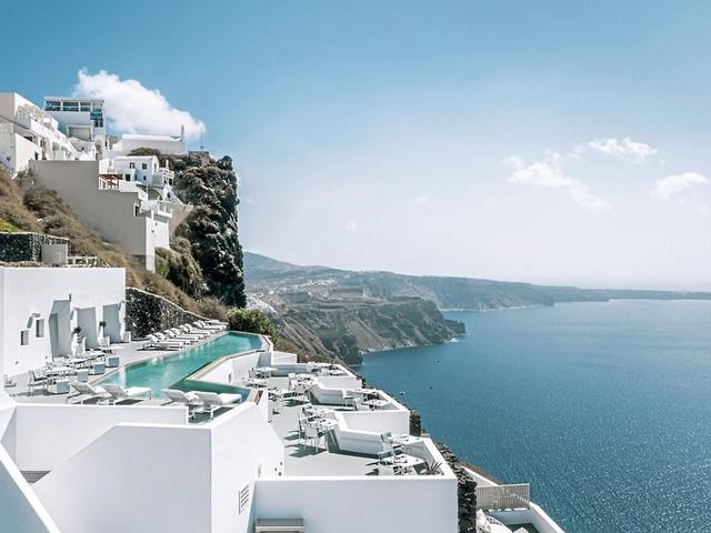 Das Hotel: Das Grace Hotel, Auberge Resorts Collection wurde im Nordwesten der Vulkaninsel Santorin terrassenförmig am Hang erbaut und ist ein wahrgewordener Traum moderner griechischer Architektur. Durch seine erhöhte Lage bietet es einen unvergesslichen Panoramablick auf die prachtvollen Sonnenuntergänge. Beim Betreten dieser Oase wird man von hellen und freundlichen Farben empfangen, die sich harmonisch in das traditionelle Bild der Insel einfügen. Am Infinity-Pool, einem der größten und schönsten der Insel, kann man tagsüber den Blick auf das weite Meer genießen und sich abends beim Dinner im Restaurant oder einem erfrischenden Cocktail an der Bar verwöhnen lassen. Das Hotel bietet außerdem ein modernes Fitness-Center und einen Spa-Bereich. Bis zum malerischen Ortszentrum von Fira mit vielen Geschäften, Bars und Restaurants sind es ca. 2 km, zum Flughafen Monolithos ca. 8 km und zum Hafen Athinios ca. 10 km.