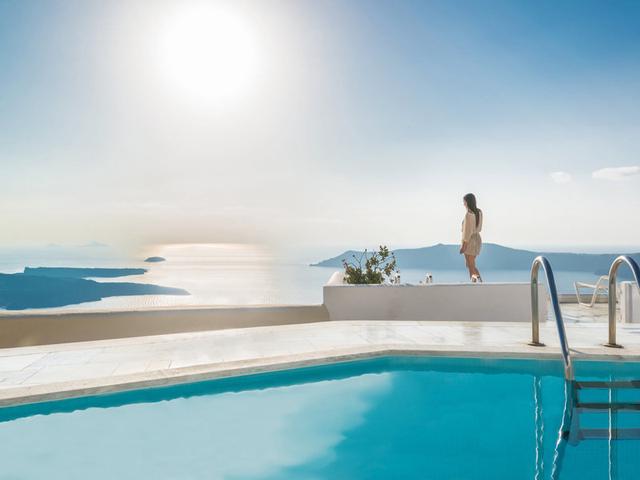 Das erwartet Sie: Kleine, ruhig gelegene Anlage - für Gäste ab 14 Jahre - mit traditionell in den Felsen gebauten Zimmern. Durch die spektakuläre Lage - 360 m über dem Meeresspiegel - genießen Gäste hier einen atemberaubenden Blick auf die Caldera und den Sonnenuntergang!