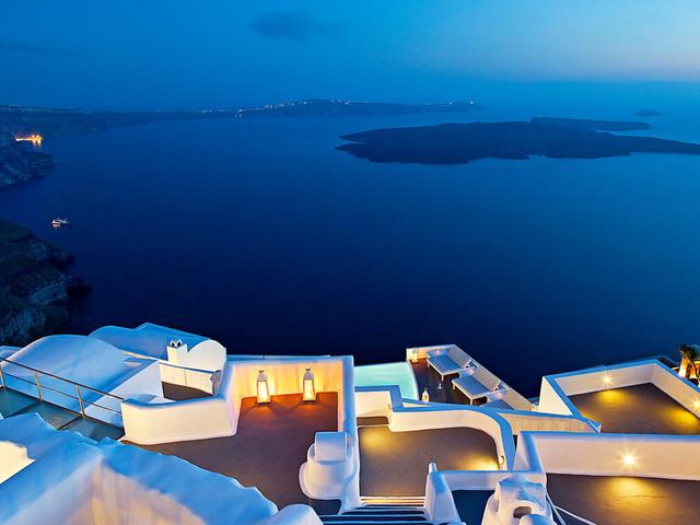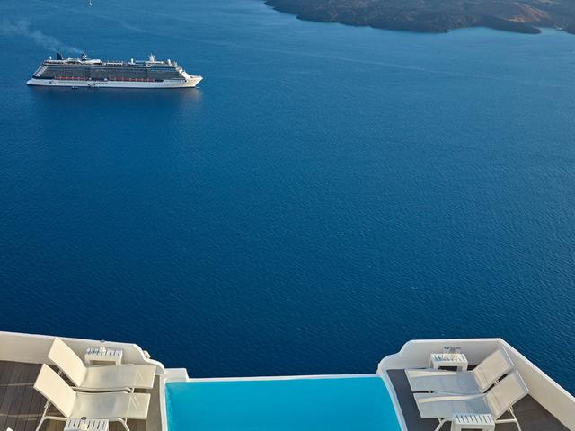 Lage & Umgebung Die Lage kann nur als intim bezeichnet werden. Hoch oben in den Klippen der Caldera versteckt sich das Hotel im Dorf Imerovigli auf Santorin und bietet seinen Gästen einen atemberaubenden Ausblick auf den Vulkankessel, das Meer und die vorgelagerten Inseln. Zum entdeckungsreichen Fira führt ein nur 20-minütiger Spaziergang.