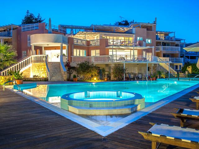 Das Aparthotel liegt in einer ruhigen, baumbestandenen Gegend, nur rund 800 m von den wunderschönen Stränden von Gerakas und Porto Roma entfernt. Der etwa 800 m entfernte Strand von Gerakas ist einer der Strände, an dem die Karettschildkröten ihre Eier ablegen. Der internationale Flughafen von Zakynthos ist etwa 20 km entfernt gelegen.