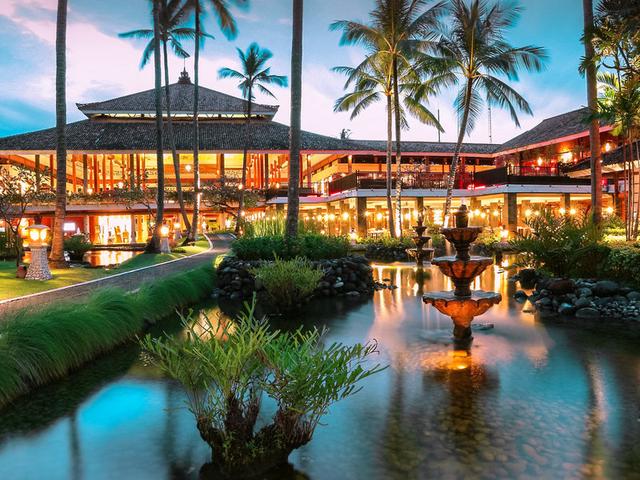 Lage & Umgebung Direkt am Sandstrand von Nusa Dua (Baden nur bei Flut möglich), inmitten einer weitläufigen, tropischen Parklandschaft, nur wenige Gehminuten vom Einkaufsviertel „Bali Collection" entfernt. Transferzeit: ca. 40 Minuten.