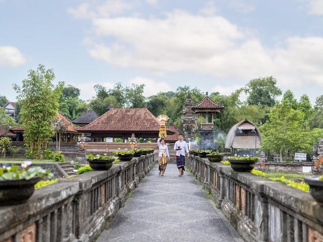 Das erwartet Sie: Versteckt in der tropischen Landschaft von Ubud erwartet dich ein Ort der Ruhe. Traditionelle balinesische Architektur trifft auf stilvolle Pool-Villen mit Blick ins Grüne. Ein Fluss durchzieht das Gelände und schafft natürliche Harmonie. Im Spa sorgt Wasserfallrauschen für tiefe Entspannung.