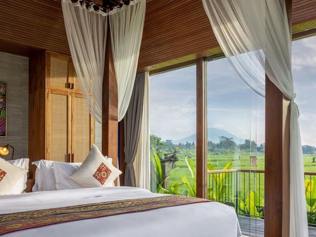 Prestige Pool Villa: ca. 120 qm, Kingsize-Bett, Blick auf Reisfelder und Dschungel, Balkon oder Terrasse, privater Pool, Klimaanlage, WLAN kostenlos, Safe, Slipper, Dusche ebenerdig, freistehende Badewanne, Föhn, Bademantel, Pflegeprodukte, TV, Kaffee-/Tee-Set, Wasserkocher, Schreibtisch.