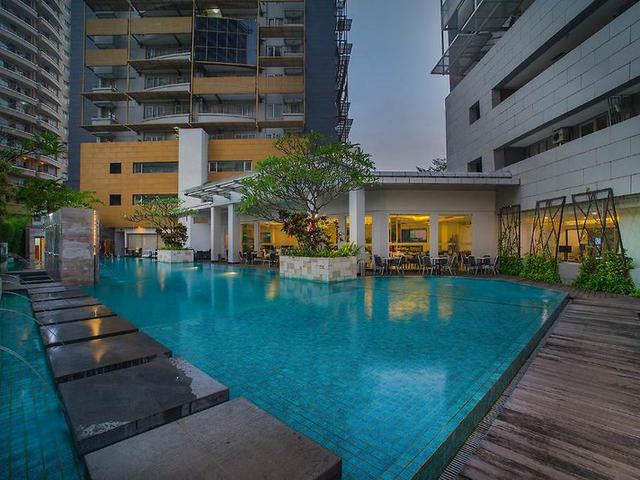 Das Vier-Sterne ÉL Hotel Royale Jakarta befindet sich im Herzen von Kelapa Gading in Nord-Jakarta. Eine 45-minütige Fahrt vom internationalen Flughafen Soekarno-Hatta, eine 20-minütige Fahrt vom Flughafen Halim Perdana Kusuma und nur 30 Minuten vom Bahnhof Gambir entfernt, bietet das Hotel einen bequemen Zugang zur Stadt. Mit 303 Zimmern, 13 Tagungsräumen und einem Ballsaal, der bis zu 1. 500 Personen Platz bietet, ist es ideal für Geschäfts- und Urlaubsreisende. Seine Nähe zu den Industrie- und Wirtschaftszentren von Nord-Jakarta sowie zu Einkaufszentren und Gewerbegebieten macht es zu einer praktischen Wahl. Familien und Freunde werden auch den hochwertigen Service des Hotels und die 27 Etagen mit Unterkünften zu schätzen wissen.