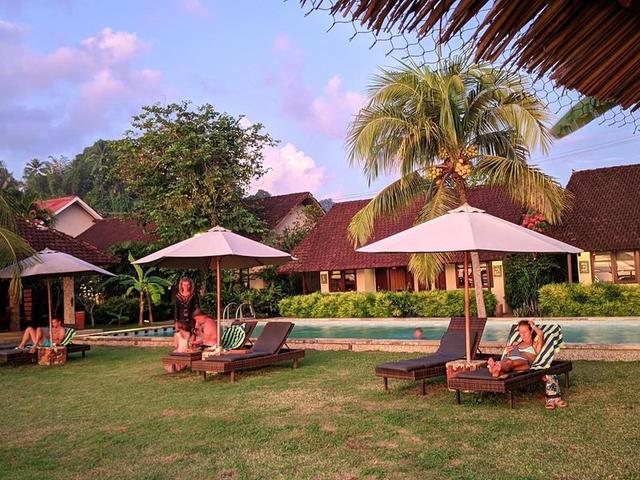 Lage & Umgebung Das Anwesen befindet sich in dem Dorf Kima Bajo in der Regentschaft Minahasa Utara. Nach rund 26 km erreicht man das Stadtzentrum Manado. Es ist das am nächsten gelegene Strandresort zum internationalen Flughafen Sam Ratulangi und bietet daher einen komfortablen Zugang zu vielen Tauchplätzen des Bunaken Marine Parks, darunter die Inseln Bunaken, Siladen, Nain, Montehage und Manado Tua.