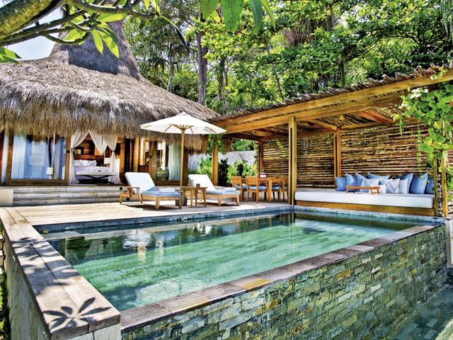 Lantoro (4) ca. 250 qm mit Aussenereich: Kombinierter Wohn-/Schlafbereich mit Plunge-Pool. Die vier Einheiten können auch als Two Bedroom (VB2) mit offenem Wohnbereich, großer Terrasse und Swimmingpool (ca. 80 qm) gebucht werden.