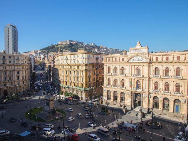 Lage & Umgebung Das Hotel liegt im Zentrum von Neapel, etwa einen 5-minütigen Spaziergang von der Basilika Santa Chiara und ca. 500 m vom Hafen entfernt. Der Fußweg zum Bahnhof Napoli Centrale dauert etwa 20 min, während die Fähren nach Sizilien, Capri und Ischia vom nahen Hafen ablegen. Der Flughafen Neapel liegt etwa 20 km entfernt.