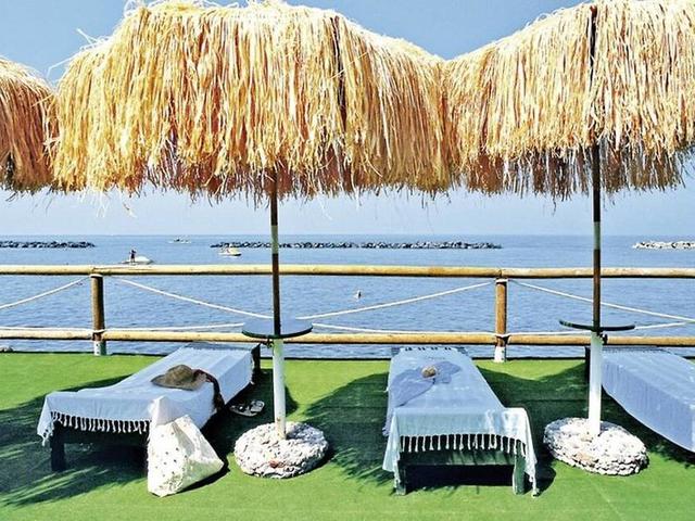Ausstattung: Kleines gepflegtes Hotel. In der Gartenanlage 1 Swimmingpool, 1 Thermalpool und Sonnenterrassen. Schirme, Liegen am Pool. Strandservice (ca. 01.06.-01.10.) gegen Gebühr. Rezeption, WLAN, Restaurant, Bar, Parkplätze. Landeskategorie: 4 Sterne, 52 Zimmer, 3 Etagen, Lift.
