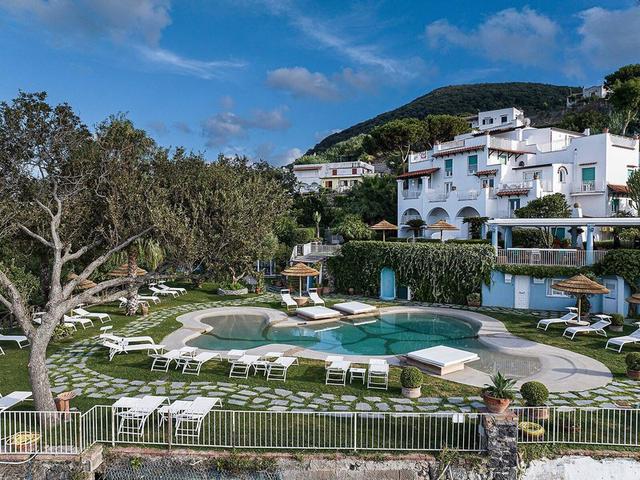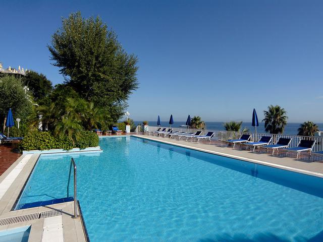 Das erwartet Sie: Das charmante Hotel befindet sich auf einer Klippe mit Blick auf den Golf von Neapel. Entspannung finden die Gäste im großen Garten mit zwei Thermalbecken und mittags und abends werden Spezialitäten aus der Region Kampanien angeboten.