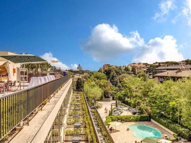 Lage & Umgebung Das Hotel liegt rund 15 min mit dem Taxi vom Bahnhof Termini und dem Flugterminal entfernt, die nächsten Anbindungen an die öffentlichen Verkehrsmittel erreicht man nach nur rund 2 Gehminuten am Platz Pio XI. Das Hotel kann einfach von der Autobahn aus erreicht werden (Richtung S. Pietro). Die wichtigen Sehenswürdigkeiten der Stadt kann man vom Hotel aus entweder zu Fuß oder mit den öffentlichen Verkehrsmitteln erreichen. Dazu gehören der Vatikan, die Spanische Treppe (rund 10 min mit den öffentlichen Verkehrsmitteln), der Trevi-Brunnen, das Kolosseum und das Pantheon (rund 20 min mit den öffentlichen Verkehrsmitteln). In der direkten Umgebung des Hotels befinden sich Bars und Restaurant, den Park Villa Pamphili erreicht man nach rund 3 min zu Fuß. Das Hotel liegt rund 30 km von Flughafen Rom-Leonardo da Vinci entfernt, den man nach etwa 30 min mit dem Auto erreicht, zum Flughafen Rom-Ciampino sind es etwa 32 km.
