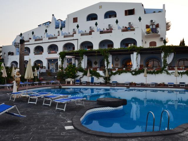 Ausstattung: Ferienanlage mit mediterranem Hotelgarten, Swimmingpool mit zwei Sonnenterrassen, Liegen und Schirmen. Strandtücher (gegen Gebühr). Empfangshalle, Rezeption, WLAN, Restaurant, American Bar. Landeskategorie: 4 Sterne, 52 Zimmer, 4 Etagen.