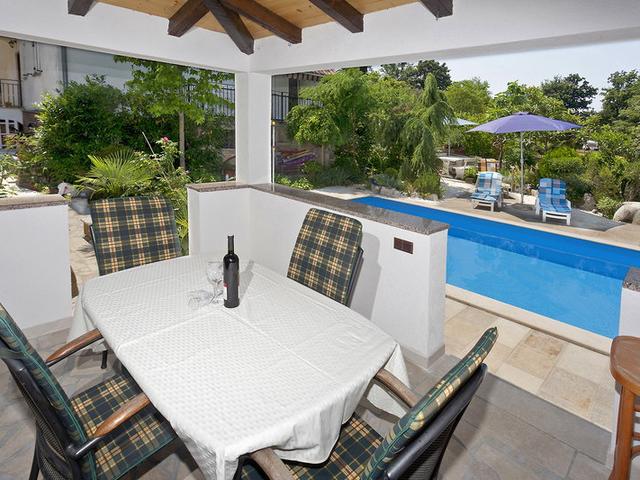 Das Haus mit zwei Appartements liegt in Mali Maj, einem nördlich von der Stadt gelegenen Vorort von Poreč. Die Nähe zu Poreč mit seinen Sportanlagen, kulturellem Angebot und Abendunterhaltung ist sicher einer der Hauptgründe, hier seinen Urlaub zu verbringen. Trotz der Nähe sind Sie so weit davon entfernt, dass Sie den Urlaubstrubel hier nicht spüren. Den nächsten bewirtschafteten Strand erreichen Sie in nur fünf Gehminuten. Beide Appartements befinden sich in der ersten Etage des Hauses, das von einem gepflegten Garten mit gemeinschaftlich genutztem Swimmingpool (8 x 4 m) und Liegestühlen umgeben ist. Eine überdachte Sommerküche mit Waschbecken und Grill steht den Gästen beider Ferienwohnungen zur gemeinsamen Nutzung zur Verfügung.