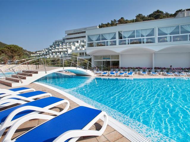 Allgemeine Beschreibung:Rund 50 m vom Kies-/Steinstrand entfernt gelegenes Hotel. Am Strand sind Sonnenliegen und Sonnenschirme gegen Gebühr verfügbar. Zum touristischen Zentrum sind es nur wenige Meter. Ein Supermarkt ist nach ca. 50 m zu erreichen. Zu den nächsten Bars und Restaurants gelangt man ebenfalls nach rund 50 m. Der Flughafen (PUY) ist ca. 45 km entfernt. Ein weiterer Flughafen (RJK) liegt in etwa 95 km Entfernung. Ausstattung:Das 7-geschossige Resorthotel verfügt über 237 Zimmer. Es bietet seinen Gästen eine 24h geöffnete Rezeption (Check In ab 15:00 Uhr, Check out bis 10:00 Uhr), eine Lobby mit Bar, 2 Lifte, eine Klimaanlage, einen Safe (kostenlos), einen Parkplatz (kostenlos) sowie eine Geldwechsel-Möglichkeit. Für das leibliche Wohl sorgen 3 Restaurants mit Klimaanlage. In den beiden Bars im Hotel freut man sich auf Ihren Besuch. WLAN steht den Hotelgästen kostenlos zur Verfügung. Die Zimmerreinigung ist kostenlos. Wäsche-Service ist gegen Gebühr. Schwimmbad:Zum Außenbereich des modernen Hotels gehören 4 Frischwasser-Pools mit einem separaten Kinderbecken (geöffnet von Juni bis September). Hier stehen Sonnenliegen und Sonnenschirme kostenlos zur Verfügung. Eine Bar am Pool bietet den Gästen erfrischende Getränke. Verpflegung:Frühstück (von 07:00 - 10:00 Uhr) vom Buffet. Halbpension Plus beinhaltet Frühstück und Abendessen sowie Getränke während der Mahlzeiten in ausgewählten Restaurants oder Bars. All Inclusive: Frühstück, Mittag- und Abendessen. Frühstück, Mittag- und Abendessen dabei nur in ausgewählten Restaurants. Kleine Snacks und Cocktails zu bestimmten Service-Zeiten. Softdrinks (10:00 - 22:00 Uhr), Kaffee und Tee (10:00 - 22:00 Uhr) und nationale alkoholische Getränke (10:00 - 22:00 Uhr). Sport/Freizeit:Sport- und Unterhaltungsangebote: Basketball, Tennis (geg. Gebühr, ca. 50 m entfernt), Tischtennis (ggf. geg. Gebühr) und Fußball. Am Strand werden Wassersportarten wie Jet-Ski (teils von lokalen Anbietern) angeboten. Unterhaltung für Erwachsene: von Juni bis September Animationsprogramm mit Abendshows und Live-Musik. Kinder finden im Außenbereich des Hotels einen Spielplatz. Kinderbetreuung: von Juni bis September täglich Animationsprogramm für Kinder (von 6 - 12 Jahren). Mini-Club für Kinder (von 6 - 12 Jahren). Zusätzliche Informationen:Für bestimmte Einrichtungen oder Aktivitäten können zusätzliche Gebühren anfallen. Einige Dienstleistungen hängen von der Jahreszeit und den lokalen klimatischen Bedingungen ab. Servicesprachen: englisch, deutsch und italienisch. Kreditkarten: Diners Club, Visa, American Express und Euro/MasterCard. Doppel Zimmer (Economy):Die Zimmer sind ausgestattet mit Safe (ggf. geg. Gebühr) und Sat-TV sowie individuell regulierbarer Klimaanlage (von Juni bis September) und zentral gesteuerter Heizung. Handtücher werden gewechselt. Größe: 16 m². Doppel Zimmer (Meerseite, Balkon):Die Zimmer sind ausgestattet mit Safe (ggf. geg. Gebühr) und Sat-TV sowie individuell regulierbarer Klimaanlage (von Juni bis September) und zentral gesteuerter Heizung. Handtücher werden gewechselt. Vierer Zimmer (Meerseite, Balkon):Die Zimmer sind ausgestattet mit Safe (ggf. geg. Gebühr) und Sat-TV sowie individuell regulierbarer Klimaanlage (von Juni bis September) und zentral gesteuerter Heizung. Handtücher werden gewechselt. Einzel Zimmer (Economy):Die Zimmer sind ausgestattet mit Safe (ggf. geg. Gebühr) und Sat-TV sowie individuell regulierbarer Klimaanlage (von Juni bis September) und zentral gesteuerter Heizung. Handtücher werden gewechselt. Größe: 16 m². Dreifach Zimmer (Meerseite, Balkon):Die Zimmer sind ausgestattet mit Safe (ggf. geg. Gebühr) und Sat-TV sowie individuell regulierbarer Klimaanlage (von Juni bis September) und zentral gesteuerter Heizung. Handtücher werden gewechselt.