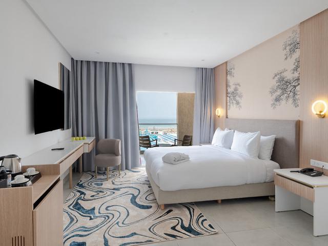 Deluxe-Zimmer (DZD, ca. 30 qm), Klimaanlage, Minibar (geg. Geb.), WLAN, TV, Safe. Bad, WC, Föhn. Balkon/Terrasse mit seitl. Meerblick. Max. 2E+1K, wahlweise auch mit Meerblick buchbar (DZP), auch zur Alleinnutzung buchbar (EZD, EZP)