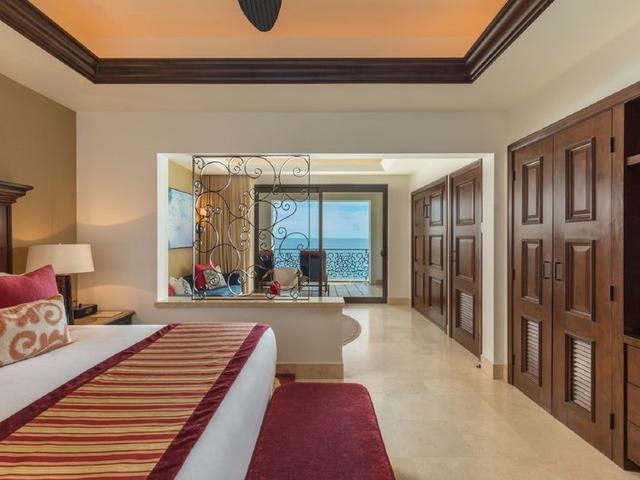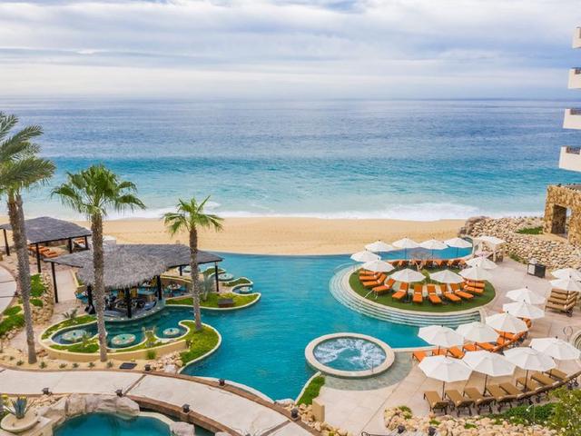 Allgemeine Beschreibung:Unmittelbar am privaten Sandstrand liegt das Hotel Grand Solmar Land's End Resort & Spa, das besonders beliebt bei Hochzeitsreisenden ist. Die Stadt Cabo San Lucas ist ca. 1 km entfernt (San Jose del Cabo ca. 30 km). Ein Supermarkt ist nach ca. 5 km zu erreichen. Die nächstgelegenen Bars und Restaurants erreichen Sie nach rund 1 km. Auch die nächste Diskothek liegt rund 1 km entfernt. Weitere Unterhaltungsangebote wie ein Kino sind in ca. 1 km Entfernung zu finden. Folgende Sehenswürdigkeiten sind vom Hotel aus erreichbar: El Arco (ca. 2 km), Medano beach (ca. 5 km), Todos Santos (ca. 45 km), Santa Maria beach (ca. 15 km) und San Jose del Cabo downtown (ca. 30 km). Für Mobilität im Urlaub sorgen neben einem Mietwagen-Verleih auch ein Taxistand (ca. 50 m) und eine Bushaltestelle (ca. 100 m entfernt). Zur ärztlichen Versorgung im Notfall befindet sich ein Krankenhaus in etwa 3 km Entfernung. Der Flughafen (SJD) ist ca. 44 km entfernt. Zwischen Hotel und Flughafen verkehrt ein Shuttle (gegen Gebühr). Ausstattung:Das 11-geschossige Wellness-Hotel verfügt über 246 Zimmer, die sich auf ein Hauptgebäude und 7 Nebengebäude verteilen. Es ist ausgestattet mit einer Rezeption (Check In ab 16:00 Uhr, Check out bis 11:00 Uhr), einer Lobby, insgesamt 8 Liften, einer Klimaanlage, einem Safe (kostenlos), einem Minimarkt, diversen weiteren Shops, einem Parkplatz (kostenlos) sowie einer Geldwechsel-Möglichkeit. Für das leibliche Wohl sorgen 8 Restaurants (klimatisiert) und eine Snackbar. In den insgesamt 4 Bars des Hotels freut man sich über Ihren Besuch. WLAN steht den Hotelgästen kostenlos zur Verfügung. Weiterhin bietet das Hotel einen Konferenzbereich mit insgesamt 167 Sitzplätzen und Internetzugang. Die Zimmerreinigung und der Concierge-Service sind kostenlos. Zimmer-Service, Wäsche-Service und medizinischer Service (von 08:00 - 20:00 Uhr) sind gegen Gebühr. Für Bügel-Service fallen ggfls. Gebühren an. Schwimmbad:Zum Außenbereich des Hotels gehören 6 Frischwasser-Pools mit einem Kinderbecken. Hier stehen Sonnenliegen und Sonnenschirme ggfls. gegen Gebühr zur Verfügung. Eine Bar am Pool bietet den Gästen erfrischende Getränke (geöffnet von 09:00 - 18:00). Verpflegung:Frühstück (von 11:00 - 12:00 Uhr) a la carte. All Inclusive: Frühstück, Mittag- und Abendessen. Frühstück, Mittag- und Abendessen dabei nur in ausgewählten Restaurants. Auch Kindermenüs erhältlich. Spätaufsteher-Frühstück (11:00 - 12:00 Uhr), 1 Mahlzeit im à-la-carte-Restaurant und kostenloses Internet. Früherer Check In und späterer Check out (je nach Auslastung/Verfügbarkeit) möglich. Sport/Freizeit:Sport- und Unterhaltungsangebote: Tischtennis (kostenlos), Fitness und Tennis (kostenlos). Ein Golfplatz befindet sich 20 km vom Hotel entfernt. Fahrradverleih. Wellnessangebote: Massagen gegen Gebühr. Spa-Bereich ggfls. gegen Gebühr. Kinderbetreuung: Mini-Club für Kinder (von 5 - 11 Jahren) und Babysitting (gegen Gebühr). Zusätzliche Informationen:Für bestimmte Einrichtungen oder Aktivitäten können zusätzliche Gebühren anfallen. Einige Dienstleistungen hängen von der Jahreszeit und den lokalen klimatischen Bedingungen ab. Servicesprachen: englisch und spanisch. Kreditkarten: Visa, Euro/MasterCard und American Express. Grand Suite (Partieller Ozeanblick, Balkon oder Terrasse):Mit Babybett (ggf. geg. Gebühr), Wasserkocher (ggf. geg. Gebühr) und Flatscreen-Sat-TV. Badezimmer mit Badewanne (Größe: 116 m²). 1 Schlafzimmer Master Suite (Partieller Ozeanblick, Balkon oder Terrasse):Mit Babybett (ggf. geg. Gebühr), Wasserkocher (ggf. geg. Gebühr) und Flatscreen-Sat-TV. Badezimmer mit Badewanne (Größe: 116 m²).