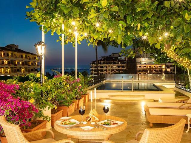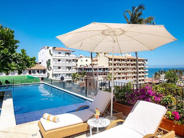 Das attraktive Cityhotel befindet sich im Herzen vom traditionellen und romantischen alten Vallarta mit üppiger tropischer Vegetation auf den Bergen. Es ist nur einen halben Block vom Schwesternhotel entfernt, angrenzend an ein breites Spektrum von zahlreichen Restaurants, diversen Bars, Cafés, Nachtclubs und einigen Geschäften. Das 2005 renovierte Hotel verfügt über ein 4-geschossiges Hauptgebäude mit insgesamt 42 Zimmern. Das Hotel bietet seinen Gästen eine Empfangshalle mit Rezeption (24 Stunden besetzt). Im Haus stehen Ihnen eine Bar und ein klimatisiertes à la carte Restaurant zur Verfügung. Außerdem bietet das Gebäude einen Zimmer- und Wäsche-Service sowie einen Parkplatz und eine Garage. Die modern eingerichteten Zimmer sind mit einem Bad/Dusche/WC, Haartrockner, Direktwahltelefon, Satelliten-TV, Minibar, Klimaanlage und Mietsafe ausgestattet. Den Gästen stehen ein beheizbarer Süßwasserpool und eine schöne Sonnenterrasse zur Verfügung.