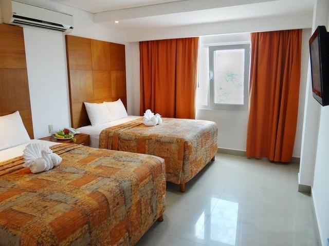 Das Hotel steht im Herzen des Stadtzentrums von Cancun, nur ungefähr 15 min von der Hotelzone entfernt. Direkt gegenüber befindet sich der Mercado 28, bekannt für sein Kunsthandwerk, zudem liegt das Hotel ganz in der Nähe der Clubs im Stadtzentrum. Zum Strand von Punta Cancun sind es rund 2 km, zur Playa del Carmen etwa 10 km und nach Merida ungefähr 40 km. Der Flughafen befindet sich in ungefähr 25 min Entfernung. Das familienfreundliche Stadthotel wurde 2008 renoviert und bietet insgesamt 54 komfortable Zimmer sowie einwandfreie Einrichtungen, die auch die anspruchsvollsten Gäste erfreuen. Es ist für Geschäftsreisende und Urlauber gleichermaßen gut geeignet. Zur Ausstattung des klimatisierten Gebäudes zählen ein Empfangsbereich, eine 24h-Rezeption mit Check-out-Service, ein Hotelsafe, eine Wechselstube und ein Restaurant. Außerdem können die Gäste den Internetzugang und, sofern sie mit dem Auto anreisen, den Parkplatz nutzen. Alle Zimmer sind mit eigenem Bad mit Dusche/Badewanne sowie mit einem Kingsize- oder Doppelbett ausgestattet. Außerdem gehören ein Telefon, ein Plasma-TV mit 32-Zoll-Bildschirm und Kabelprogrammen, ein Schreibtisch, Highspeed-Internetzugang und ein Safe, passend für Laptops, zu den Zimmern. Des Weiteren sind eine Klimaanlage, Einbauschränke und ein elektronisches Türschloss in allen Unterkünften standardmäßig vorhanden. Die Gäste können sich ihr kontinentales Frühstück an einem Buffet zusammenstellen, das Mittagessen kann à la carte oder in Form eines Wahlmenüs genossen werden.