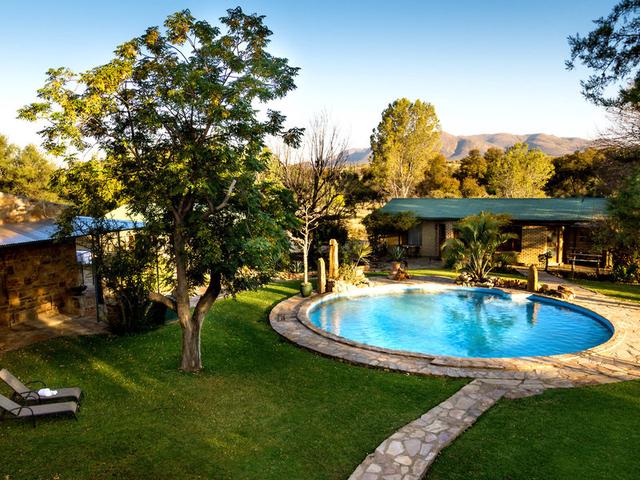 Lage & Umgebung Diese Lodge liegt in einem ca. 60 qkm großen Naturreservat, die wegen mehrerer kleiner Stauseen und Wasserstellen ein Paradies für Wildtiere, wie Kudu, Oryx, Kuhantilope, Warzenschwein, Steinböckchen und Duiker sowie für mehr als 100 Vogelarten ist. Besonders bekannt ist sie für ihre große Weißrücken- und Ohrengeierpopulation. Entfernung zum Flughafen Windhoek ca. 11 km.
