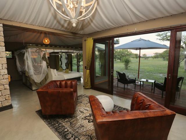 Zimmerbeschreibung: Die geräumigen Chalets sind sorgfältig in die Umgebung integriert. Sie liegen weit voneinander entfernt, das verspricht viel Privatsphäre und einen ungestörten Blick in die Savanne. Die Einrichtung kombiniert moderne Designelemente mit sorgfältig ausgewählter Dekoration, das an die Kolonialzeit erinnert. Sie sind mit Bad/Dusche, Aussendusche, Minibar, Safe, Klimaanlage ausgestattet. Entspannen Sie auf der schattigen Terrasse und geniessen Sie dabei die herrliche Umgebung.