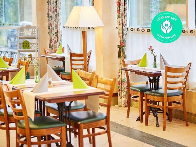 Essen & Trinken: Die Unterbringung verfügt über ein Restaurant und eine Bar. Das Hotel bietet als buchbare Verpflegungsleistungen Übernachtung inkl. Frühstück, Halbpension und Vollpension. Ein reichhaltiges Frühstücksbuffet garantiert einen guten Start in den Tag. Mittags gibt es die Wahl zwischen Buffet, à la carte und Menü und abends zwischen à la carte und Menü. Auch besondere Speisen sind erhältlich, darunter Diätgerichte. Darüber hinaus stellt das Haus spezielle Verpflegungsangebote bereit. Die Unterbringung führt ein Sortiment alkoholischer und alkoholfreier Getränke.