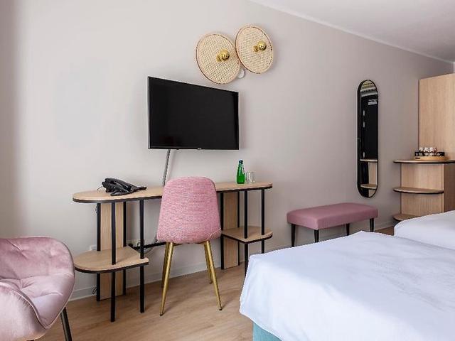 Das Mittelklassehotel liegt im Stadtzentrum von Krakau. Einkaufsmöglichkeiten, Restaurant sowie die öffentlichen Verkehrsmittel befinden sich direkt am Hotel. Das erbaute City-Hotel verfügt über insgesamt 31 Zimmer. Den Gästen stehen Empfangshalle, Aufzüge, ein Café und ein Parkplatz zur Verfügung. Das klimatisierte Restaurant lädt zu einem Besuch ein. Der Wäscheservice rundet das Angebot ab. Die Zimmer haben Bad/WC, Haartrockner, Direktwahltelefon, Satelliten-/Kabel-TV, Radio, Internetzugang, eine Minibar und Zentralheizung. Alle Zimmer sind mit Teppichboden ausgelegt.