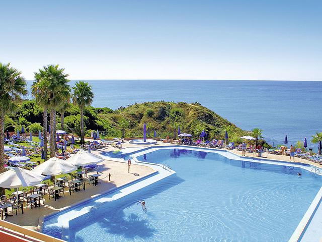 Ausstattung: Weitläufige, terrassenförmig angelegte Ferienanlage mit tollem Blick auf den Atlantik, bestehend aus Haupthaus und mehreren Wohngebäuden, inmitten eines gepflegten Gartens. 2 Swimmingpools, Sonnenterrassen, Liegewiese, Liegen, Schirme am Pool, Pool-/Snackbar, Sitzterrasse. Empfangsbereich, Rezeption, WLAN, Sitzgelegenheiten, Bar mit Außenterrasse, Restaurant. Minimarkt. Landeskategorie: 3 Sterne, 287 Wohneinheiten, 3-5 Etagen, 5 Lifte.