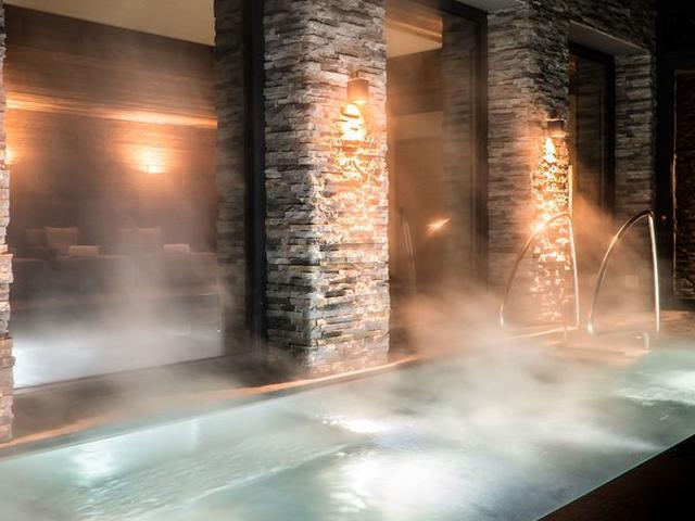Privates Spa (90qm) mit Jacuzzi, Dampfbad, finnischer Sauna und Ruheraum (auf Anfrage und gegen Gebühr, für 2-4 Personen).